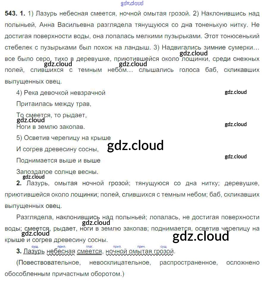 Ответ на задание 543 Учебник Русский язык за 6 (шестой) класс Разумовская, Львова, Капинос, Львов, Соловейчик, Сергеева, Тронина Вертикаль 2016, 2022