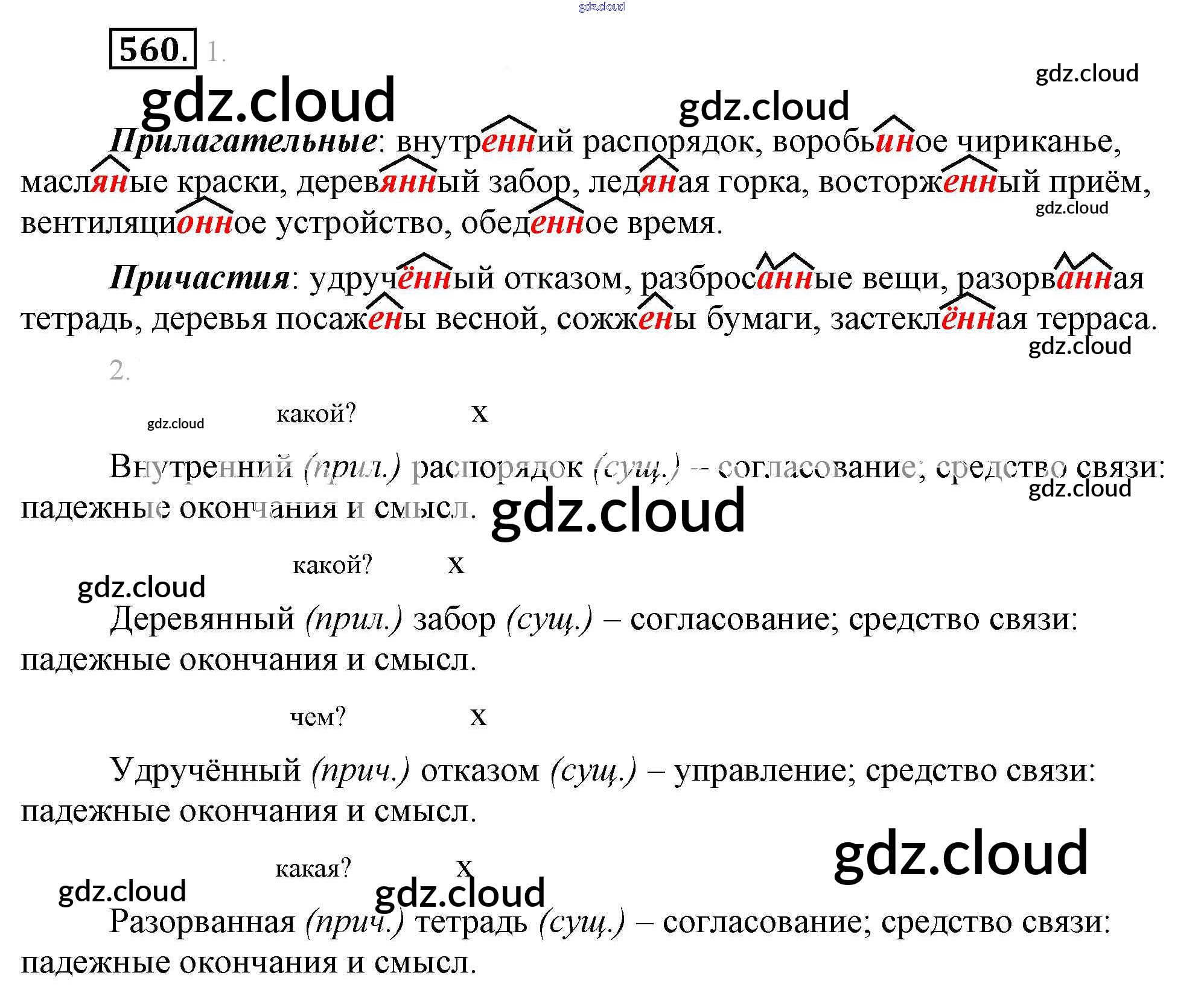 Ответ на задание 560 Учебник Русский язык за 6 (шестой) класс Разумовская, Львова, Капинос, Львов, Соловейчик, Сергеева, Тронина Вертикаль 2016, 2022