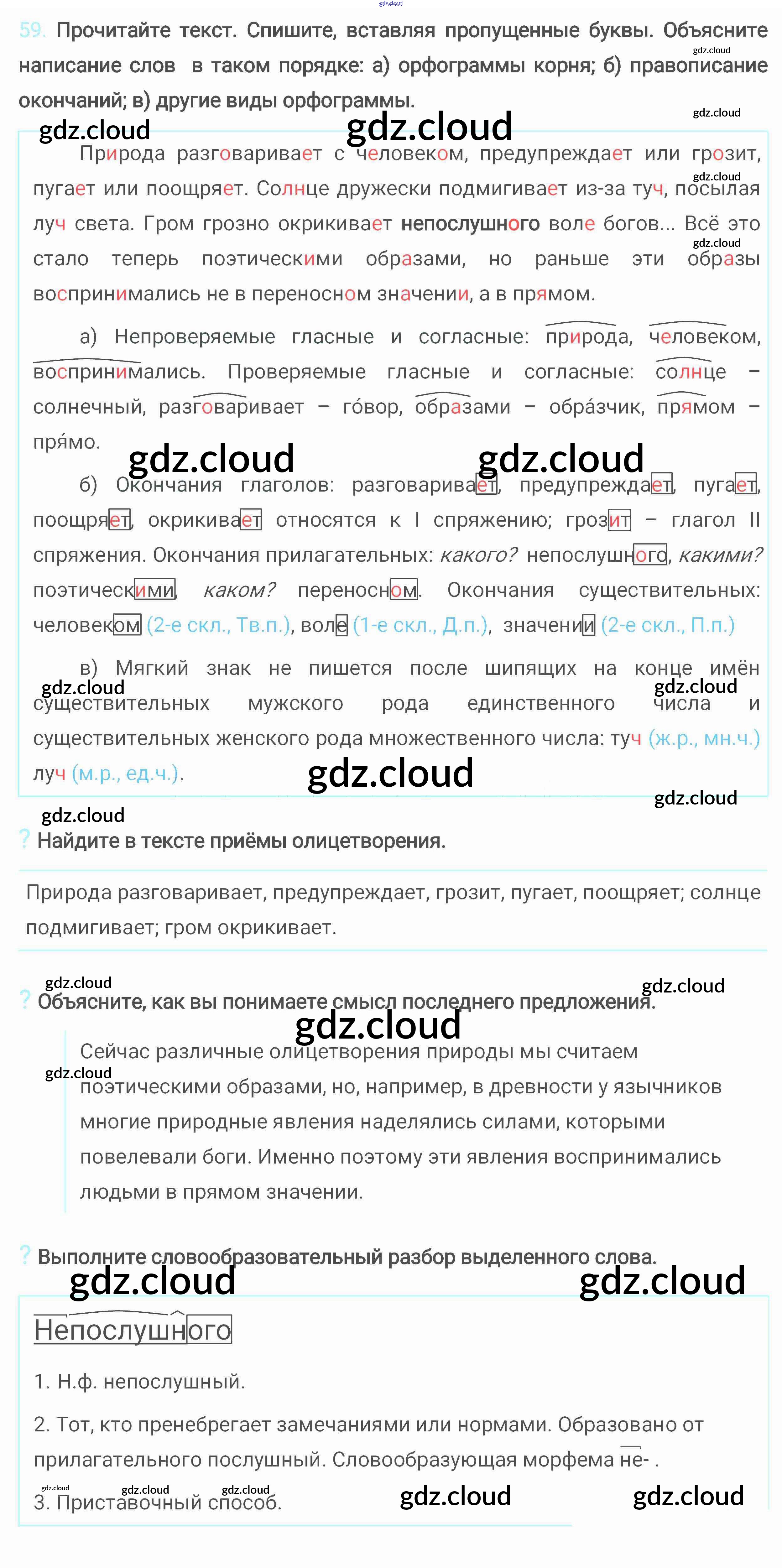 Ответ на задание 59 Учебник Русский язык за 6 (шестой) класс Разумовская, Львова, Капинос, Львов, Соловейчик, Сергеева, Тронина Вертикаль 2016, 2022