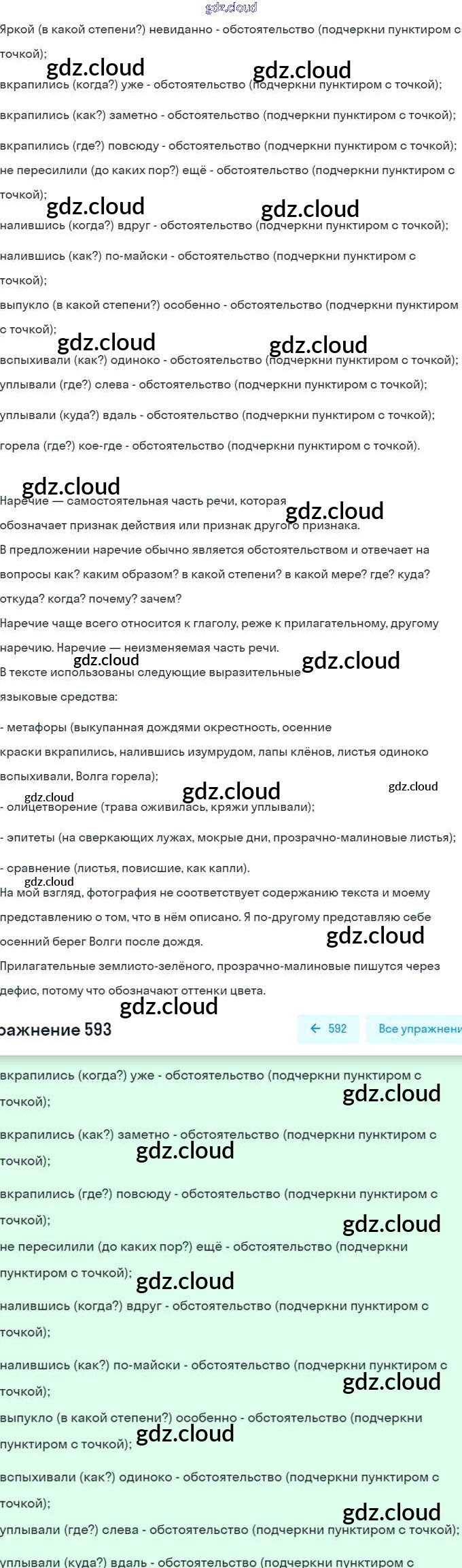 Ответ на задание 593 Учебник Русский язык за 6 (шестой) класс Разумовская, Львова, Капинос, Львов, Соловейчик, Сергеева, Тронина Вертикаль 2016, 2022
