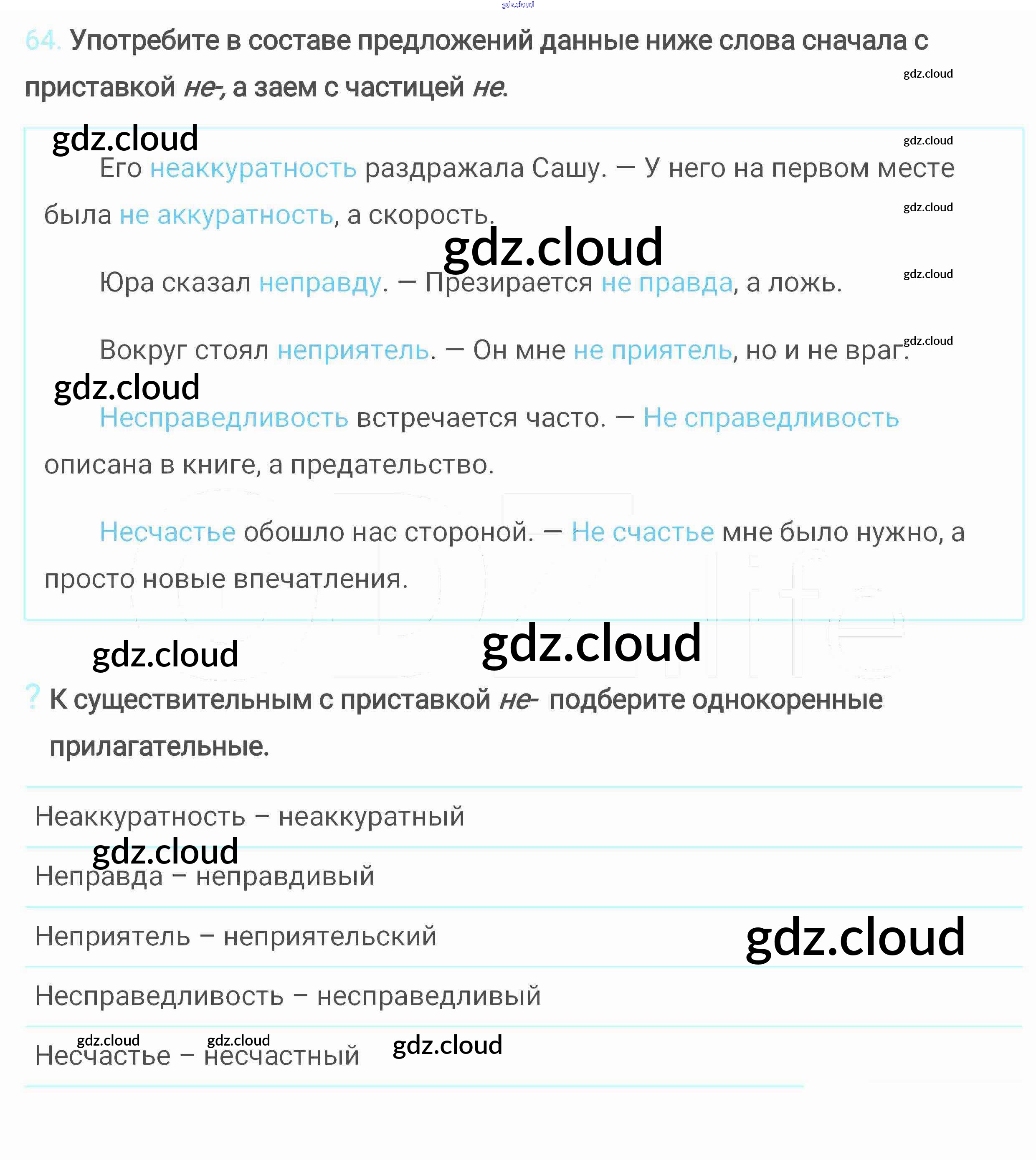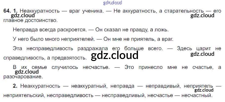 Ответ на задание 64 Учебник Русский язык за 6 (шестой) класс Разумовская, Львова, Капинос, Львов, Соловейчик, Сергеева, Тронина Вертикаль 2016, 2022