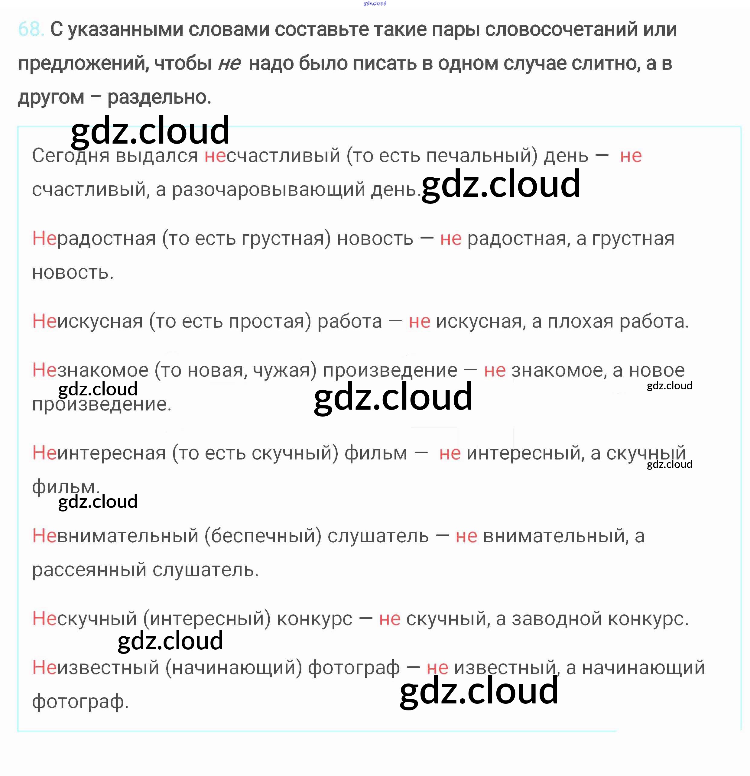 Ответ на задание 68 Учебник Русский язык за 6 (шестой) класс Разумовская, Львова, Капинос, Львов, Соловейчик, Сергеева, Тронина Вертикаль 2016, 2022