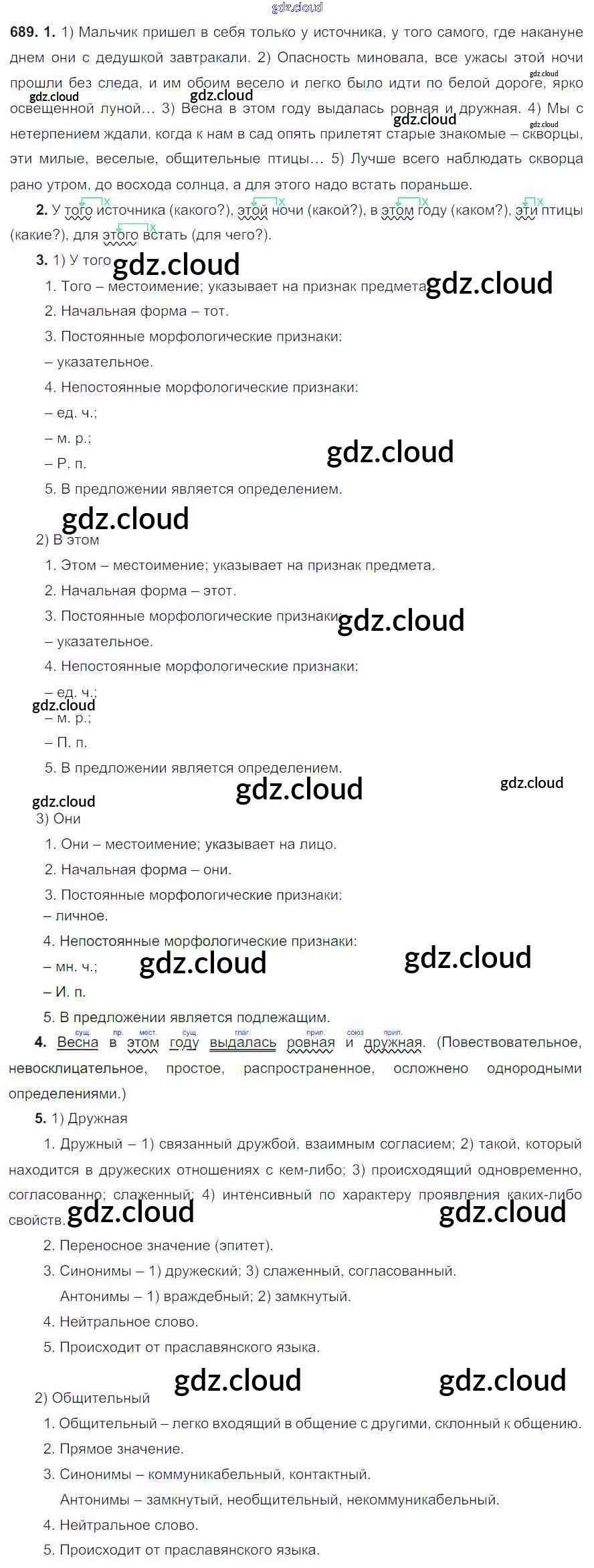 Ответ на задание 689 Учебник Русский язык за 6 (шестой) класс Разумовская, Львова, Капинос, Львов, Соловейчик, Сергеева, Тронина Вертикаль 2016, 2022