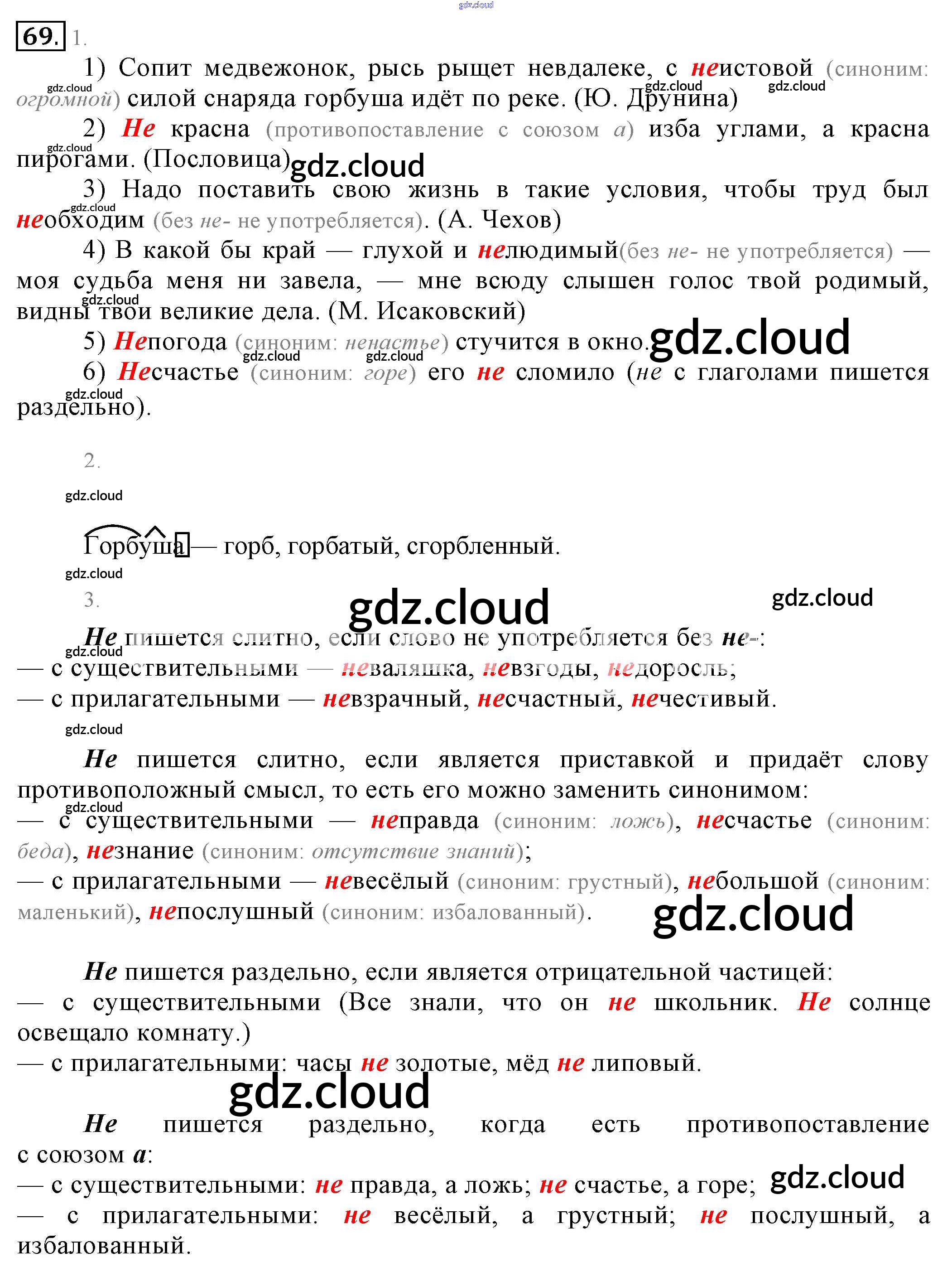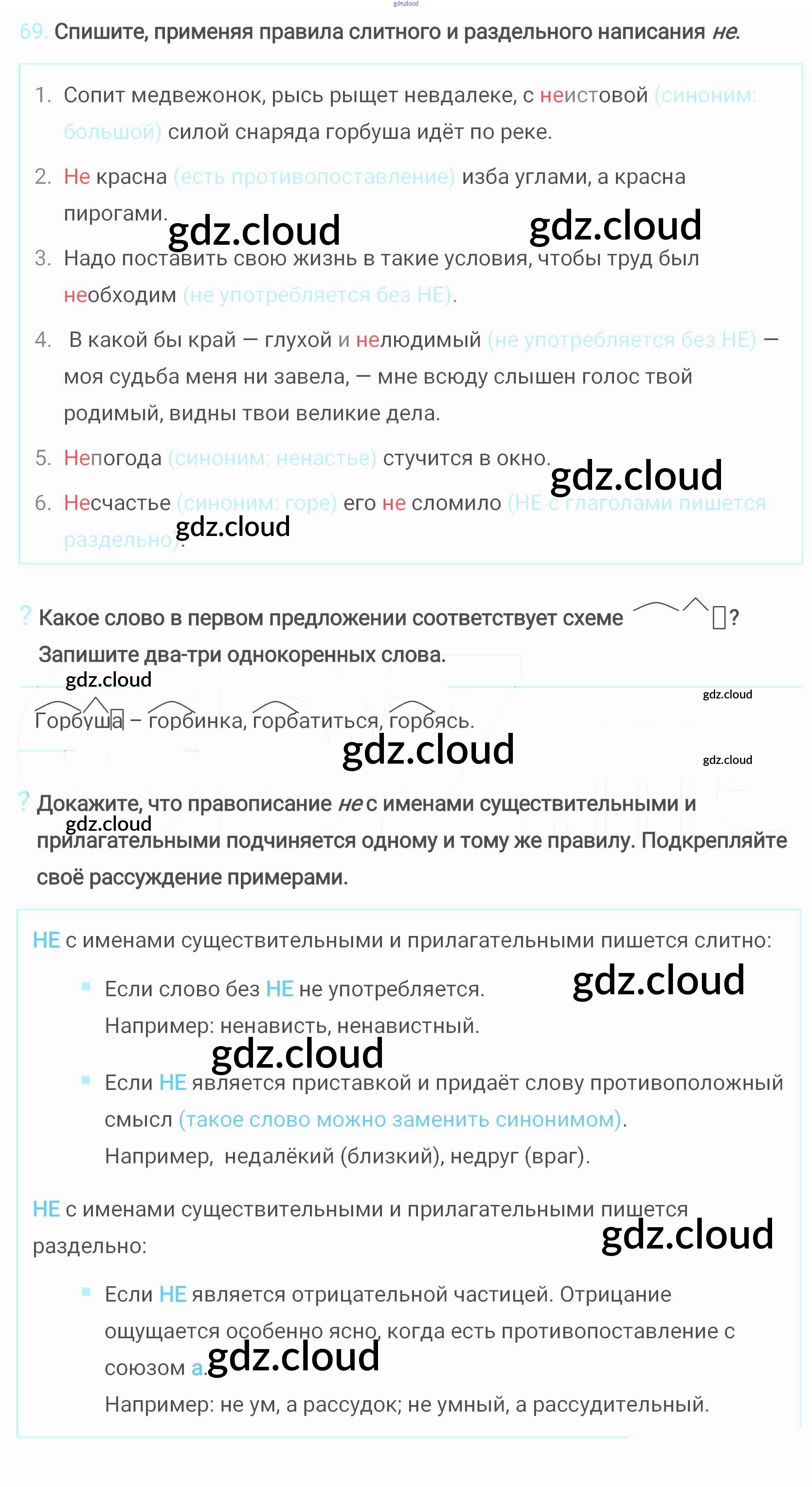 Ответ на задание 69 Учебник Русский язык за 6 (шестой) класс Разумовская, Львова, Капинос, Львов, Соловейчик, Сергеева, Тронина Вертикаль 2016, 2022