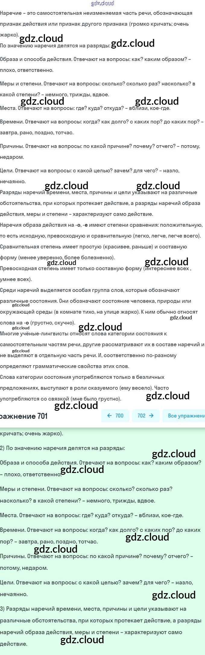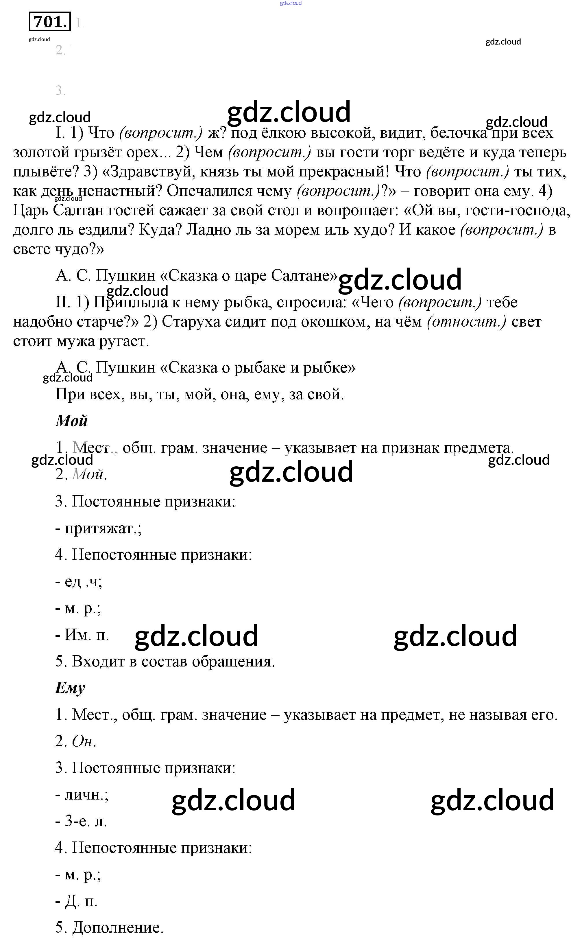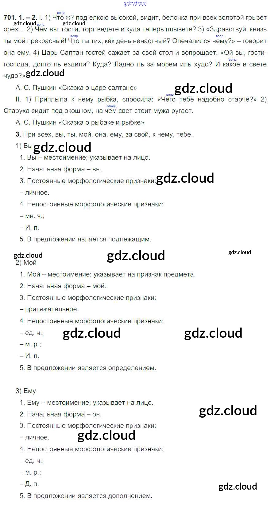 Ответ на задание 701 Учебник Русский язык за 6 (шестой) класс Разумовская, Львова, Капинос, Львов, Соловейчик, Сергеева, Тронина Вертикаль 2016, 2022