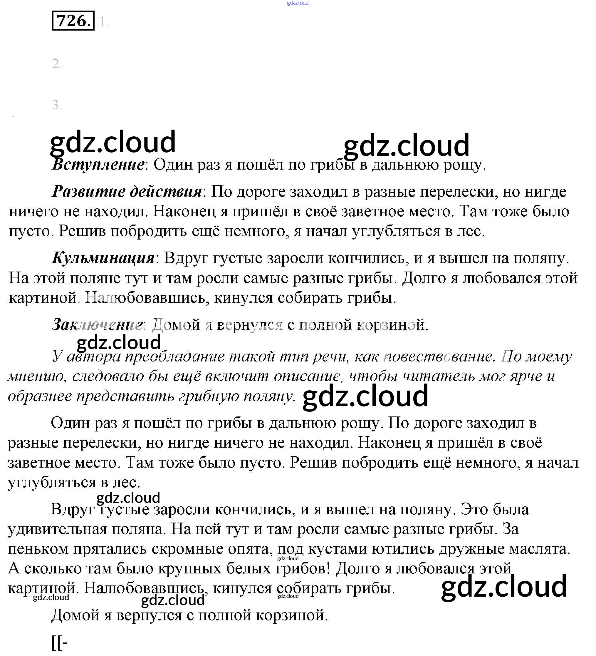 Ответ на задание 726 Учебник Русский язык за 6 (шестой) класс Разумовская, Львова, Капинос, Львов, Соловейчик, Сергеева, Тронина Вертикаль 2016, 2022