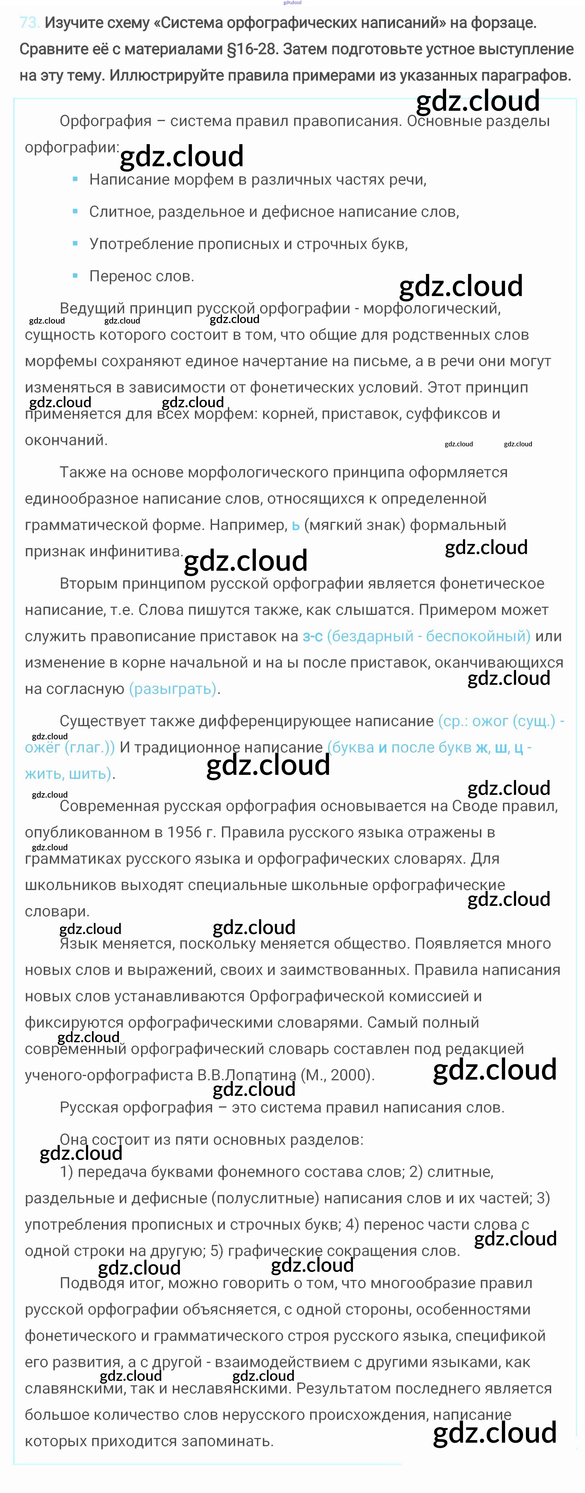 Ответ на задание 73 Учебник Русский язык за 6 (шестой) класс Разумовская, Львова, Капинос, Львов, Соловейчик, Сергеева, Тронина Вертикаль 2016, 2022