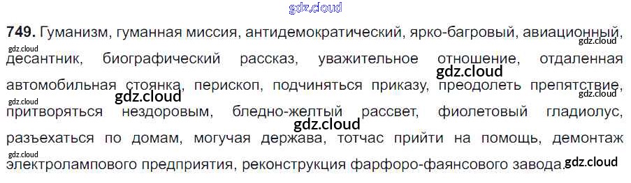 Ответ на задание 749 Учебник Русский язык за 6 (шестой) класс Разумовская, Львова, Капинос, Львов, Соловейчик, Сергеева, Тронина Вертикаль 2016, 2022