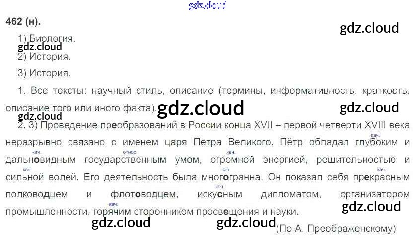 Ответ на задание 462 Учебник Русский язык за 6 (шестой) класс Рыбченкова, Александрова, Загоровская, Нарушевич 2016 Часть 1, 2