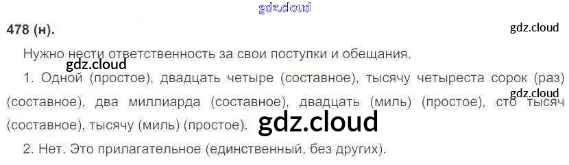 Ответ на задание 478 Учебник Русский язык за 6 (шестой) класс Рыбченкова, Александрова, Загоровская, Нарушевич 2016 Часть 1, 2
