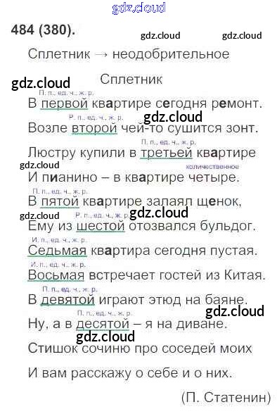 Ответ на задание 484 Учебник Русский язык за 6 (шестой) класс Рыбченкова, Александрова, Загоровская, Нарушевич 2016 Часть 1, 2