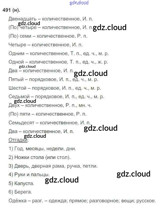 Ответ на задание 491 Учебник Русский язык за 6 (шестой) класс Рыбченкова, Александрова, Загоровская, Нарушевич 2016 Часть 1, 2