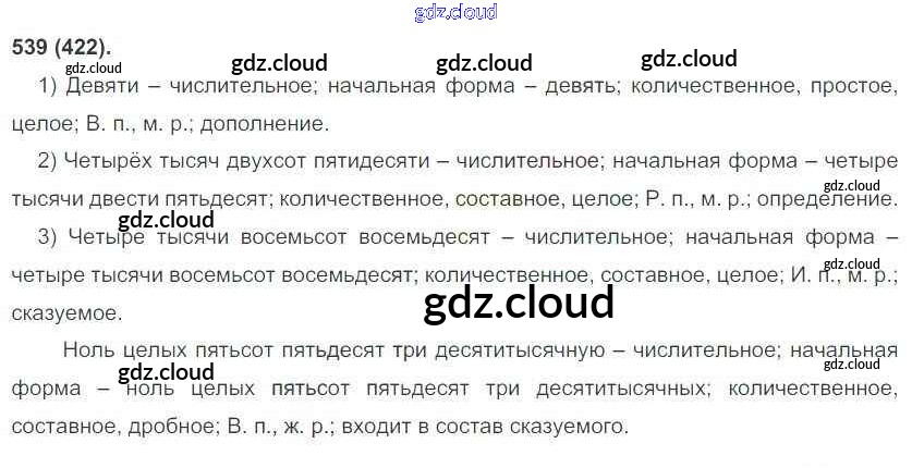 Ответ на задание 539 Учебник Русский язык за 6 (шестой) класс Рыбченкова, Александрова, Загоровская, Нарушевич 2016 Часть 1, 2