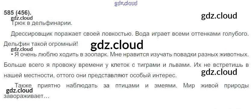 Ответ на задание 585 Учебник Русский язык за 6 (шестой) класс Рыбченкова, Александрова, Загоровская, Нарушевич 2016 Часть 1, 2