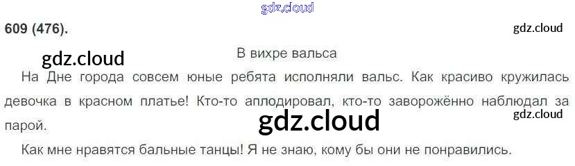 Ответ на задание 609 Учебник Русский язык за 6 (шестой) класс Рыбченкова, Александрова, Загоровская, Нарушевич 2016 Часть 1, 2
