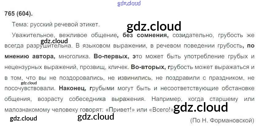 Ответ на задание 765 Учебник Русский язык за 6 (шестой) класс Рыбченкова, Александрова, Загоровская, Нарушевич 2016 Часть 1, 2