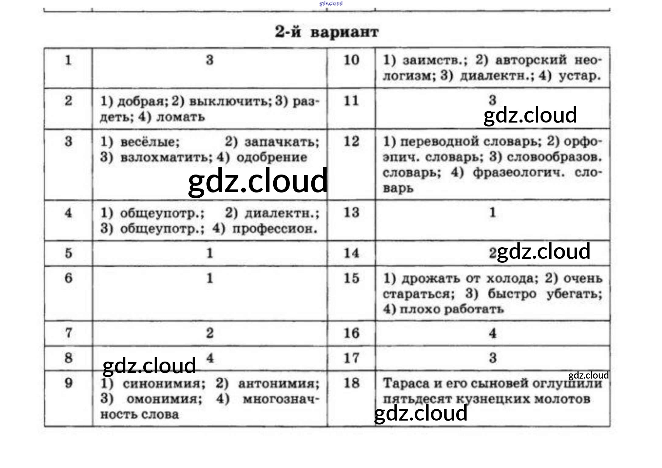 Ответы к теме: Лексика и фразеология. Культура речи по Русскому языку 6 класс Диагностические работы Соловьева Просвещение