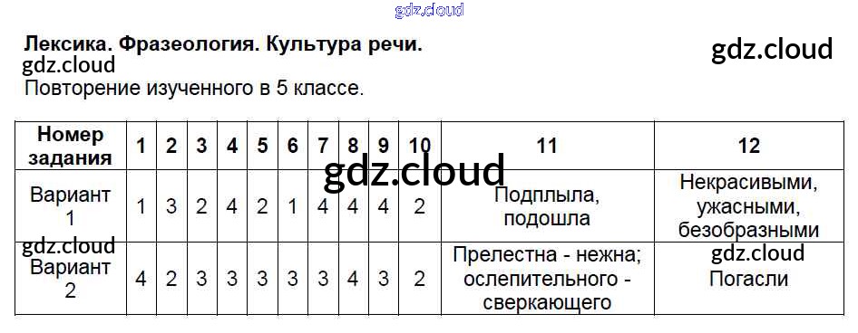 Ответ на задание Тест-6. Лексика. Фразеология. Культура речи Тесты Русский язык за 6 (шестой) класс Селезнева УМК 2014 Часть 1, 2