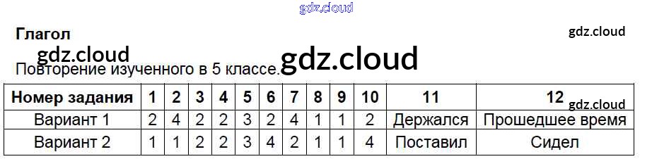Ответ на задание Тест-12. Глагол Тесты Русский язык за 6 (шестой) класс Селезнева УМК 2014 Часть 1, 2