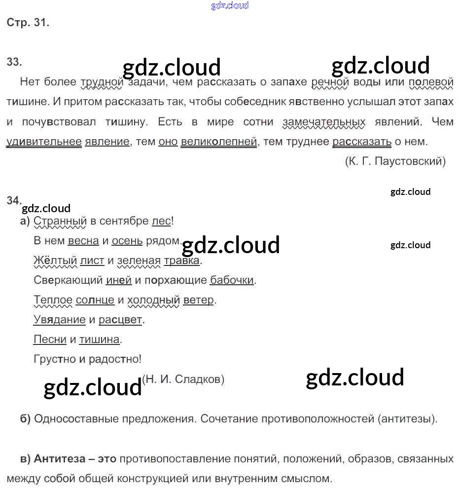 Ответ на задание 31 Рабочая тетрадь Русский язык за 6 (шестой) класс Тростенцова, Дейкина, Невская УМК 2018 Часть 1, 2