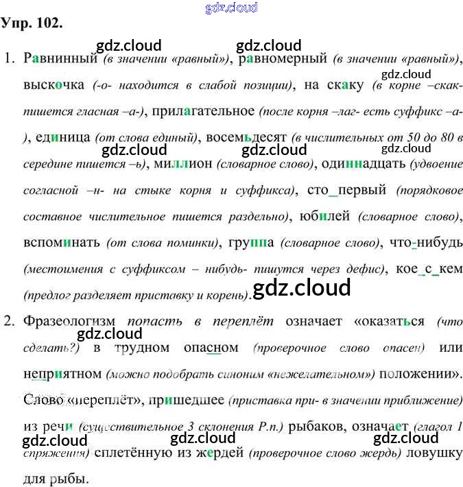 Ответ на задание 102 Учебник Русский язык за 6 (шестой) класс Александрова, Загоровская, Богданов 2020 ФГОС онлайн и без номера телефона.