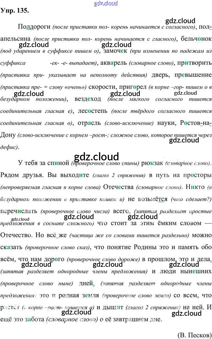 Ответ на задание 135 Учебник Русский язык за 6 (шестой) класс Александрова, Загоровская, Богданов 2020 ФГОС онлайн и без номера телефона.
