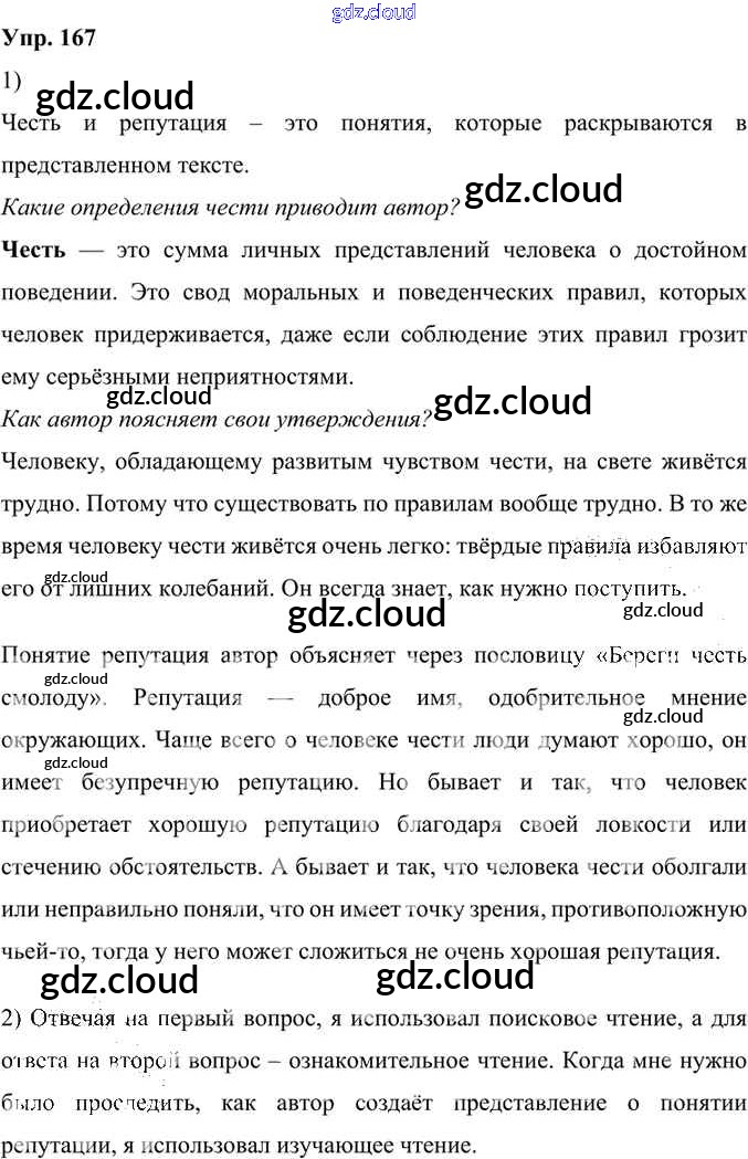 Ответ на задание 167 Учебник Русский язык за 6 (шестой) класс Александрова, Загоровская, Богданов 2020 ФГОС онлайн и без номера телефона.