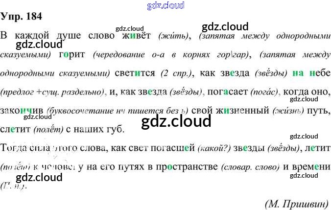 Ответ на задание 184 Учебник Русский язык за 6 (шестой) класс Александрова, Загоровская, Богданов 2020 ФГОС онлайн и без номера телефона.
