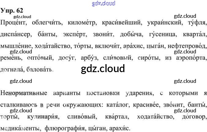 Ответ на задание 62 Учебник Русский язык за 6 (шестой) класс Александрова, Загоровская, Богданов 2020 ФГОС онлайн и без номера телефона.