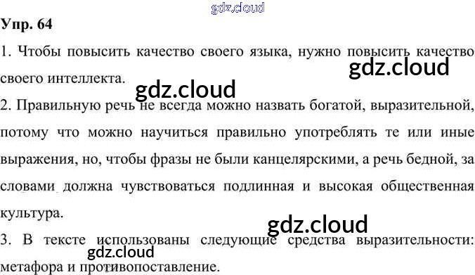 Ответ на задание 64 Учебник Русский язык за 6 (шестой) класс Александрова, Загоровская, Богданов 2020 ФГОС онлайн и без номера телефона.