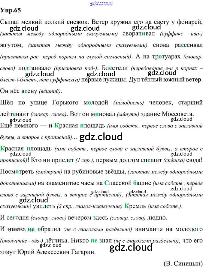 Ответ на задание 65 Учебник Русский язык за 6 (шестой) класс Александрова, Загоровская, Богданов 2020 ФГОС онлайн и без номера телефона.