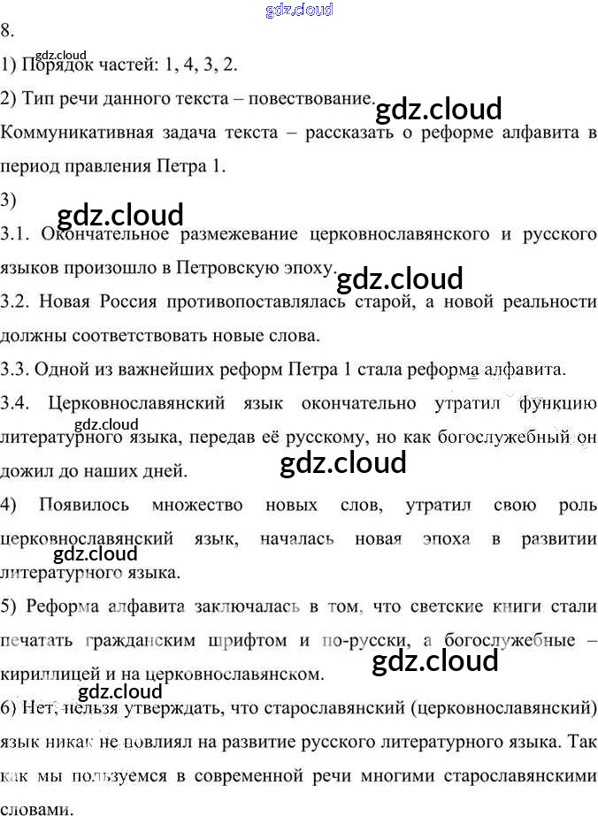 Ответ на задание 8 Учебник Русский язык за 6 (шестой) класс Александрова, Загоровская, Богданов 2020 ФГОС онлайн и без номера телефона.