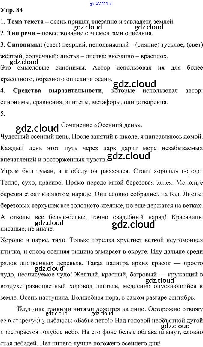 Ответ на задание 84 Учебник Русский язык за 6 (шестой) класс Александрова, Загоровская, Богданов 2020 ФГОС онлайн и без номера телефона.