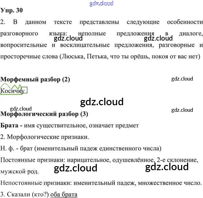 Ответ на задание 30 Учебник Русский язык за 6 (шестой) класс Быстрова, Кибирева, Гостева Инновационная школа 2016 Часть 1, 2