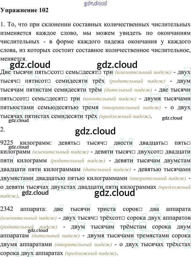 Ответ на задание 102 Учебник Русский язык за 6 (шестой) класс Быстрова, Кибирева, Гостева Инновационная школа 2016 Часть 1, 2