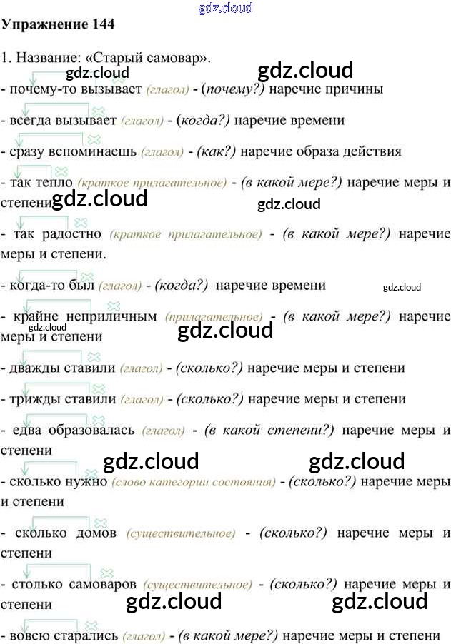 Ответ на задание 144 Учебник Русский язык за 6 (шестой) класс Быстрова, Кибирева, Гостева Инновационная школа 2016 Часть 1, 2