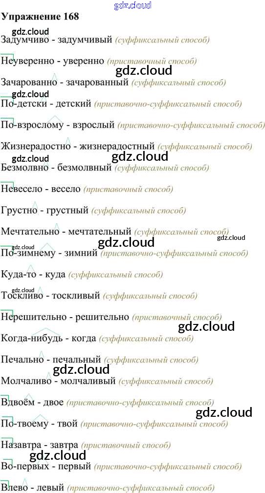 Ответ на задание 168 Учебник Русский язык за 6 (шестой) класс Быстрова, Кибирева, Гостева Инновационная школа 2016 Часть 1, 2