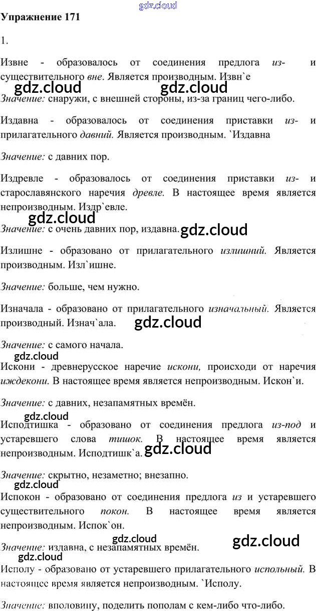 Ответ на задание 171 Учебник Русский язык за 6 (шестой) класс Быстрова, Кибирева, Гостева Инновационная школа 2016 Часть 1, 2