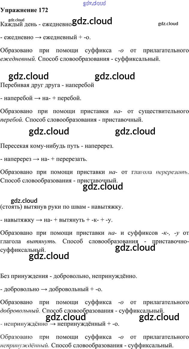 Ответ на задание 172 Учебник Русский язык за 6 (шестой) класс Быстрова, Кибирева, Гостева Инновационная школа 2016 Часть 1, 2