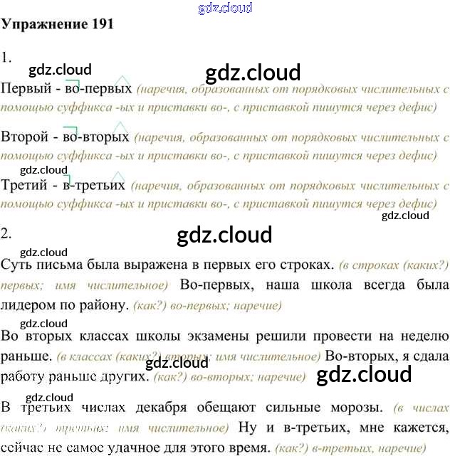 Ответ на задание 191 Учебник Русский язык за 6 (шестой) класс Быстрова, Кибирева, Гостева Инновационная школа 2016 Часть 1, 2