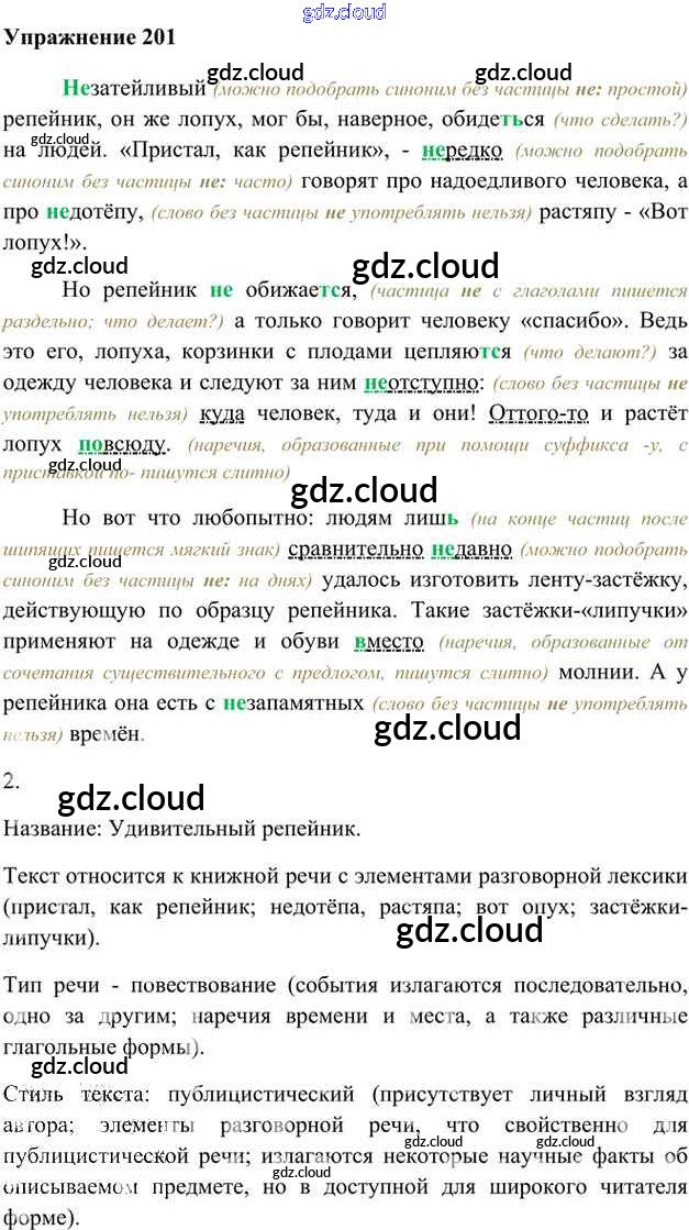 Ответ на задание 201 Учебник Русский язык за 6 (шестой) класс Быстрова, Кибирева, Гостева Инновационная школа 2016 Часть 1, 2