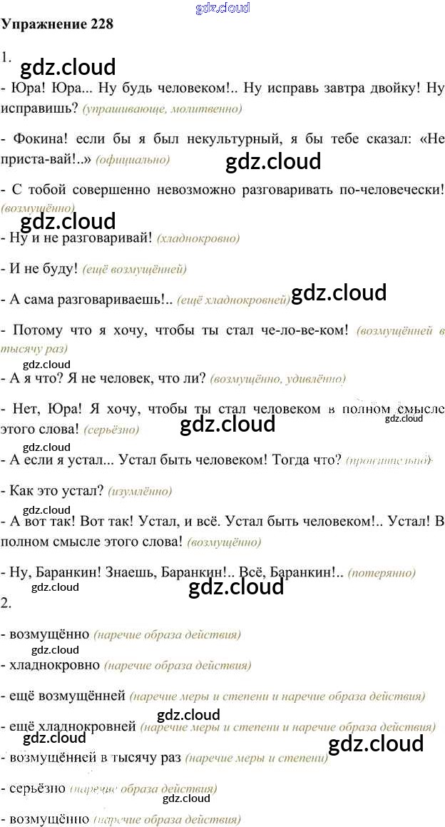 Ответ на задание 228 Учебник Русский язык за 6 (шестой) класс Быстрова, Кибирева, Гостева Инновационная школа 2016 Часть 1, 2