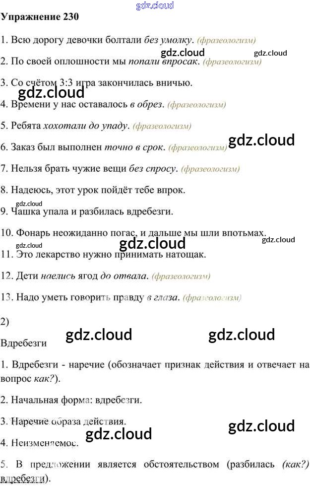 Ответ на задание 230 Учебник Русский язык за 6 (шестой) класс Быстрова, Кибирева, Гостева Инновационная школа 2016 Часть 1, 2