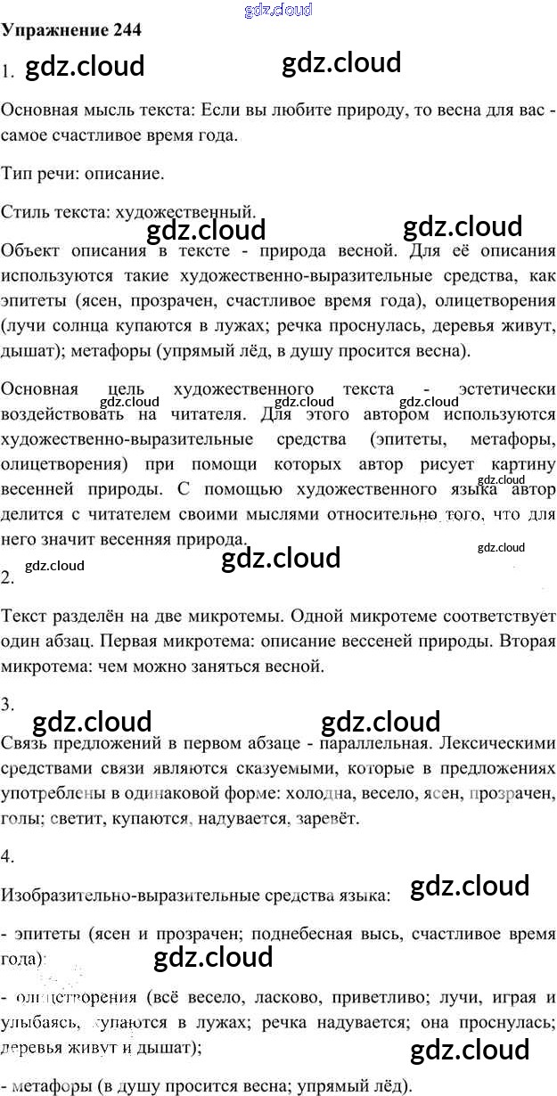 Ответ на задание 244 Учебник Русский язык за 6 (шестой) класс Быстрова, Кибирева, Гостева Инновационная школа 2016 Часть 1, 2