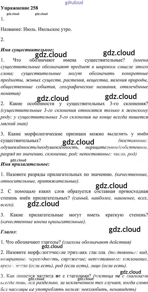 Ответ на задание 258 Учебник Русский язык за 6 (шестой) класс Быстрова, Кибирева, Гостева Инновационная школа 2016 Часть 1, 2