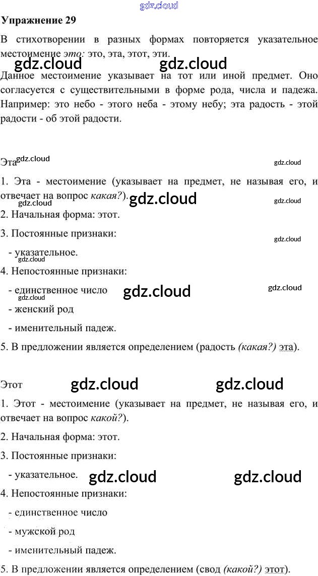 Ответ на задание 29 Учебник Русский язык за 6 (шестой) класс Быстрова, Кибирева, Гостева Инновационная школа 2016 Часть 1, 2