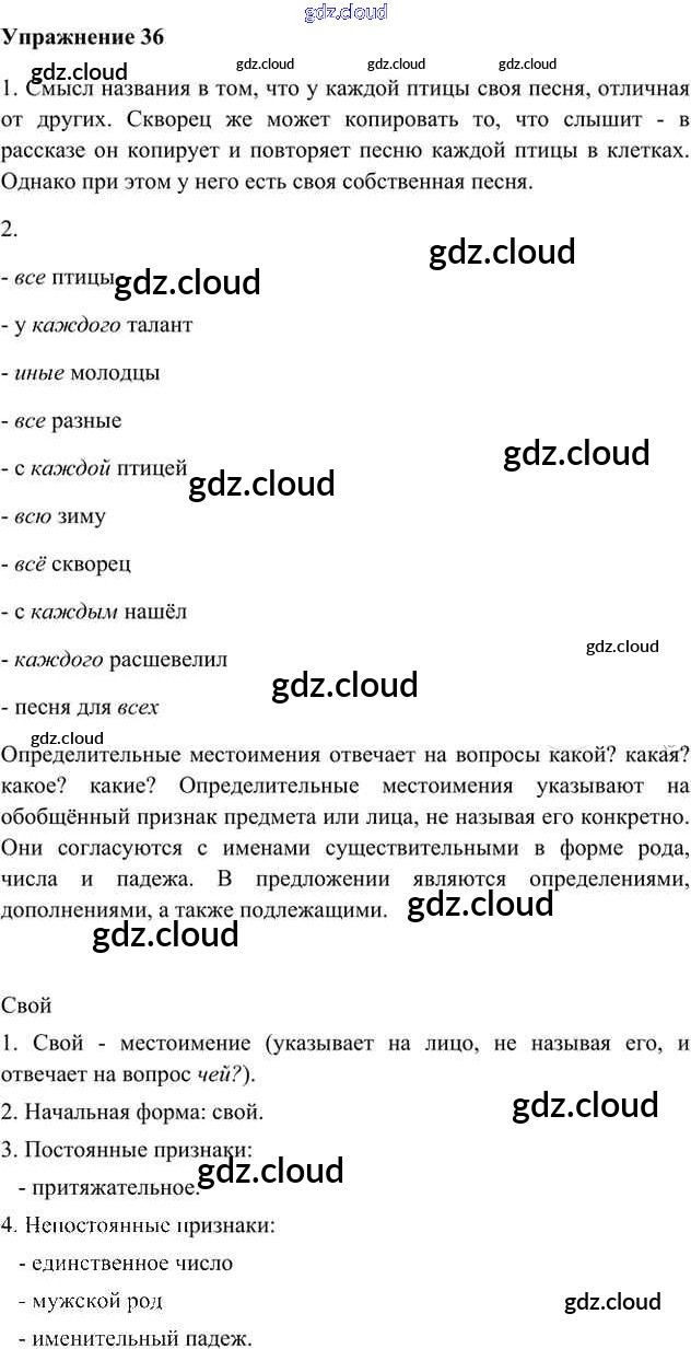 Ответ на задание 36 Учебник Русский язык за 6 (шестой) класс Быстрова, Кибирева, Гостева Инновационная школа 2016 Часть 1, 2