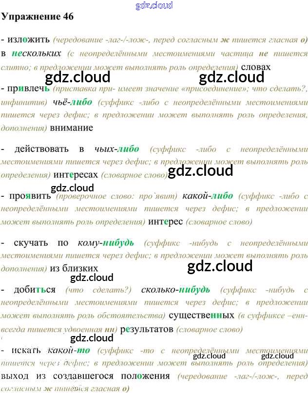 Ответ на задание 46 Учебник Русский язык за 6 (шестой) класс Быстрова, Кибирева, Гостева Инновационная школа 2016 Часть 1, 2
