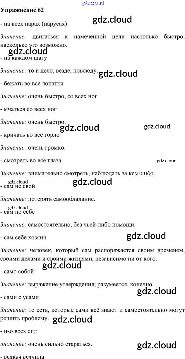 Ответ на задание 62 Учебник Русский язык за 6 (шестой) класс Быстрова, Кибирева, Гостева Инновационная школа 2016 Часть 1, 2