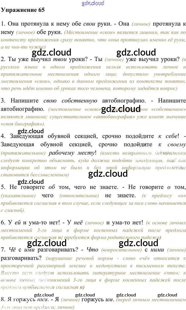 Ответ на задание 65 Учебник Русский язык за 6 (шестой) класс Быстрова, Кибирева, Гостева Инновационная школа 2016 Часть 1, 2